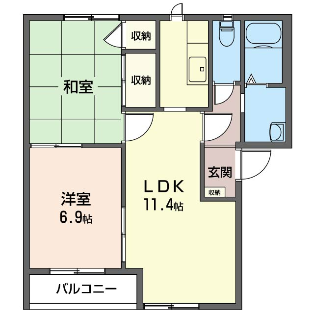 | 間取り | 2LDK | 間取り詳細 | 和室6.0・洋室5.9・LDK11.4 | 専有面積 | 50㎡ |