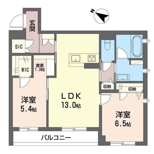 | 間取り | 2LDK | 間取り詳細 | 洋室5.4・洋室6.5・LDK13.0 | 専有面積 | 62.05㎡ |