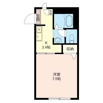 間取り | 1K | 間取り詳細 | 洋室7.5・K3.4 | 専有面積 | 24.5㎡ |