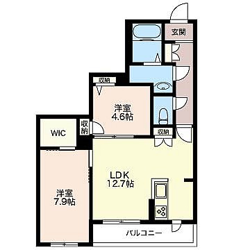 | 間取り | 2LDK | 間取り詳細 | 洋室4.6・洋室7.9・LDK12.7 | 専有面積 | 58.55㎡ |